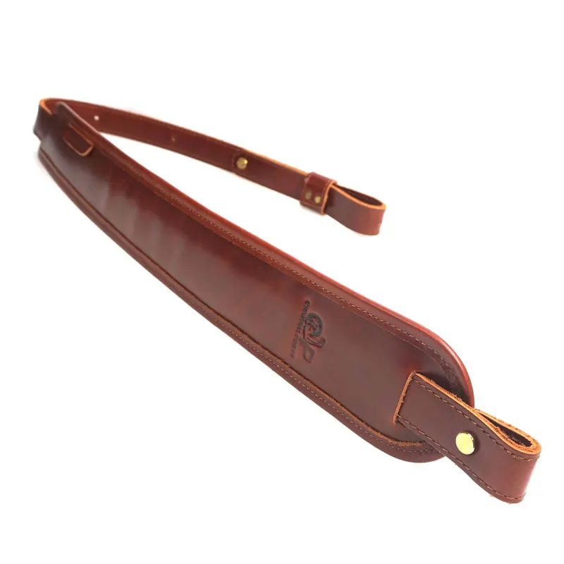 Двухслойная воловья кожа винтовка Слинг, толстый и прочный, но податливый, дополненный прошивкой, Стеганое плечо для долгих часов отслеживания и охоты: поставляется с 5 мм внутренней неопреновой подушкой для ультра комфорта и противоскользящей. 32,7 "до 41,3" регулируемая длина: твердая латунь Chicago винты с обеих сторон прорези для безопасной регулировки посадки, Бесшумный слинг, без металлической пряжки для ненужного шума при столкновении.