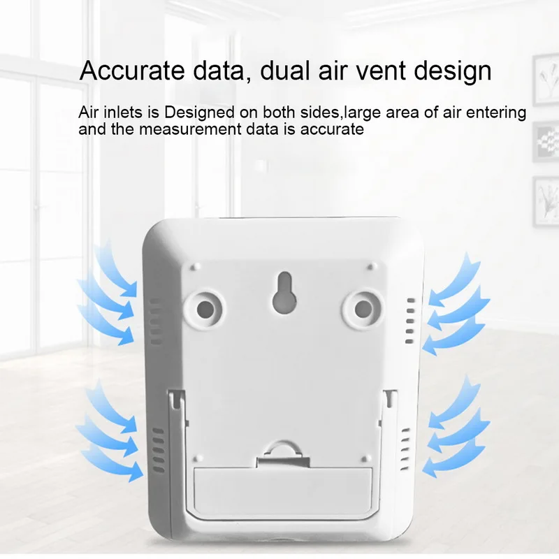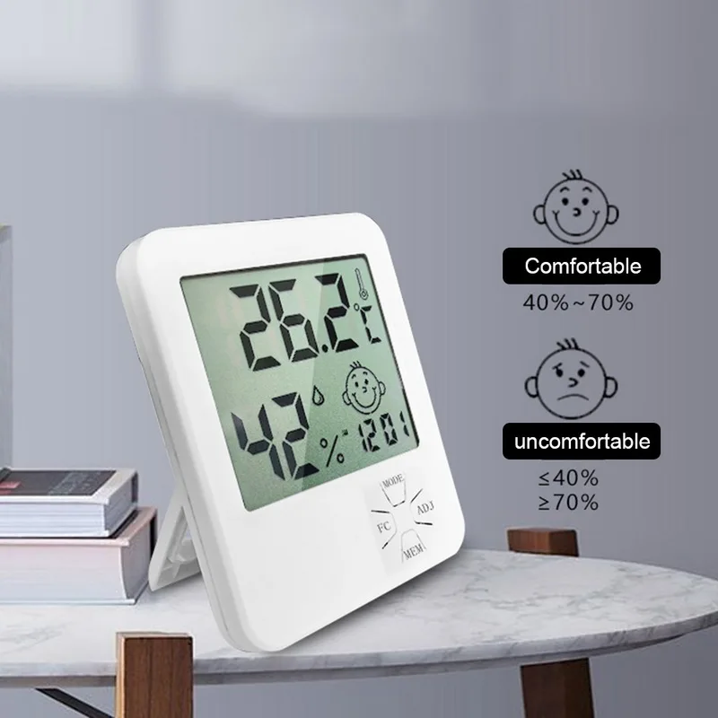 <Здоровая среда: термометр-гигрометр с монитором температуры и влажности, обеспечивающий надлежащий контроль влажности в помещении, позволяя коже, аллергену и другим преимуществам для здоровья.