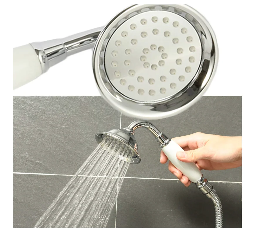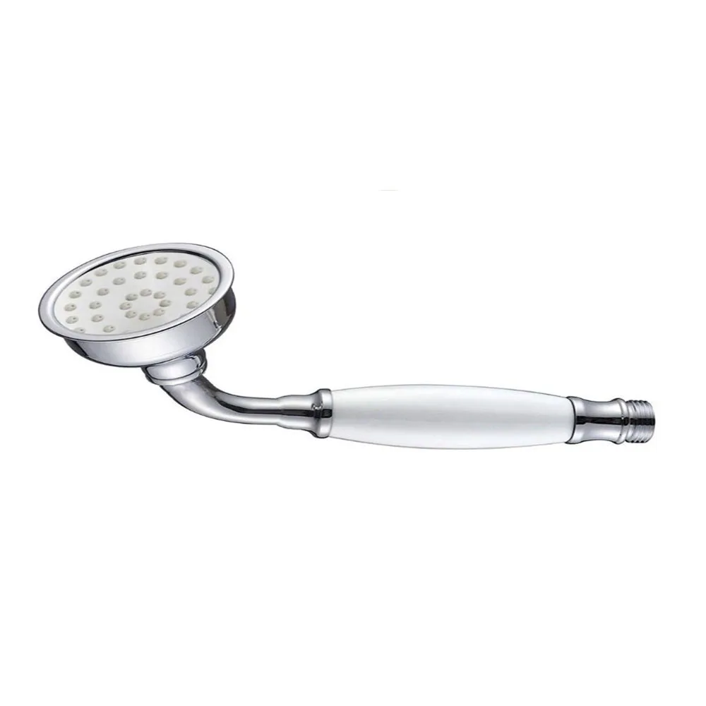 1). Материал: твердая латунная душевая головка + керамическая ручка. Хромированная часть изготовлена из латуни, а белая часть изготовлена из керамики. Обеспечение качества и долговечности. 2). Отделка поверхности: хром. Хромированная античная отделка делает уникальный декоративный стиль 3). Уникальный стиль: телефонный стиль придает насадке душа уникальный, классический и роскошный вид 4). Тип подключения: G1/2 ". Соответствует стандартным размерам, 5). Самоустановка, Открутите головку с помощью регулируемого гаечного ключа