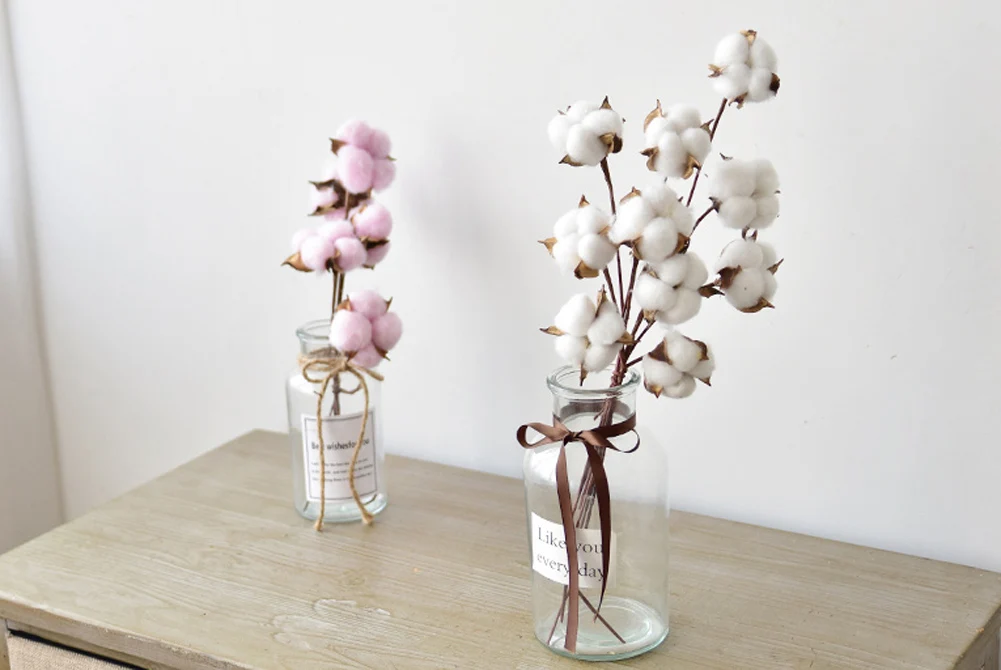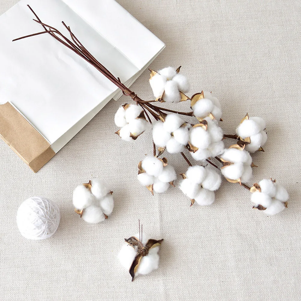 3. Стебли изготовлены из хлопковых боллов и цветочной проволоки, обернутой коричневой деревенской цветочной лентой, что делает их простыми для изменения формы каждого стержня для оптимального домашнего декора.