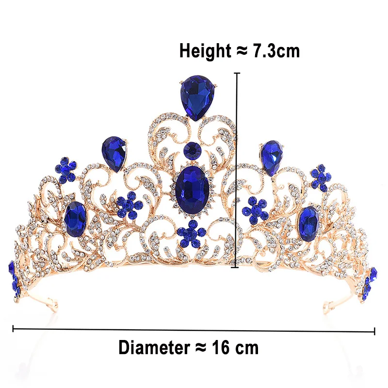 Барокко свадебные аксессуары для волос свадебная тиара Корона Красный Зеленый Синий Принцесса Корона для девочек Хрустальный головной убор ювелирные изделия Диаметр ≈ 16 см Высота ≈ 7,3 см