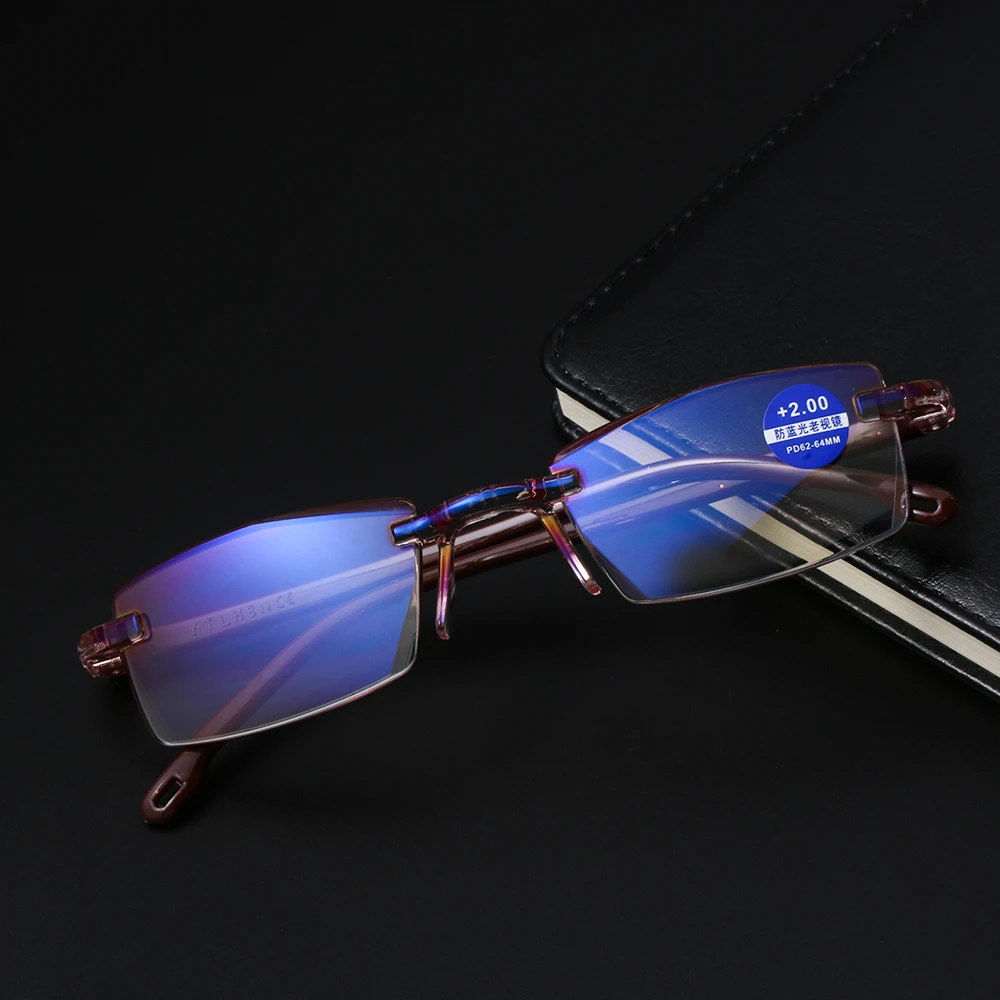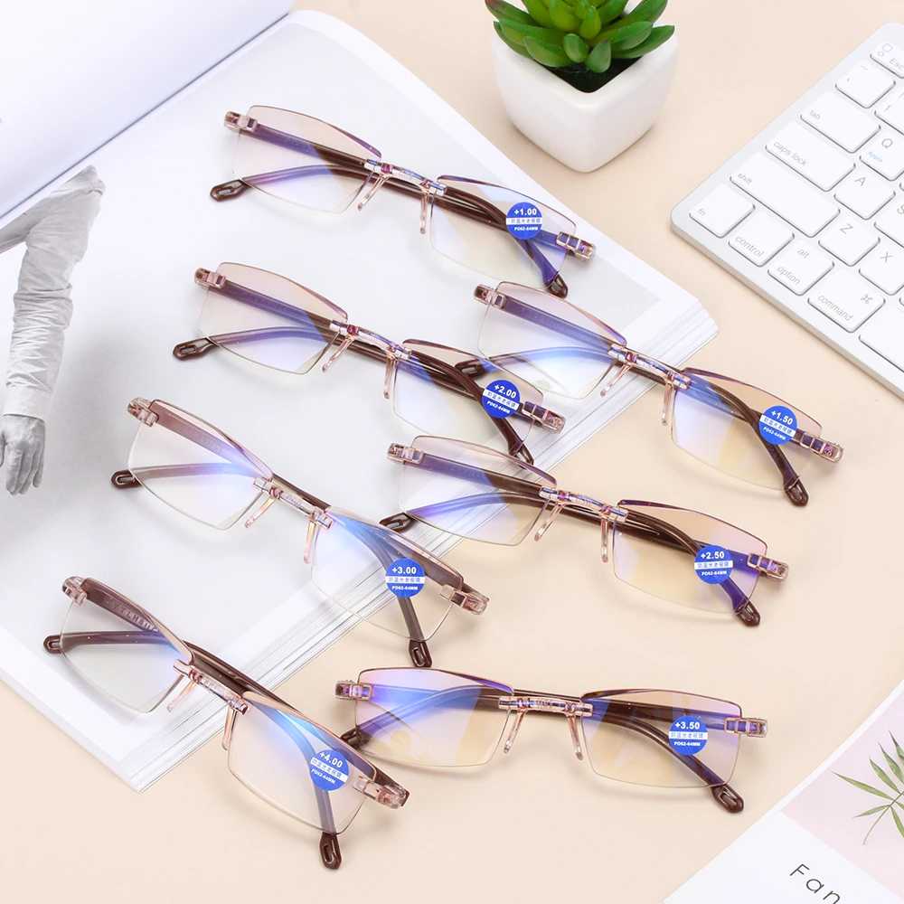 Ультралегкие очки унисекс для чтения без оправы с алмазной огранкой, очки для чтения с защитой от голубого света и излучения, очки для пресбиопии, компьютерные очки 1 шт.