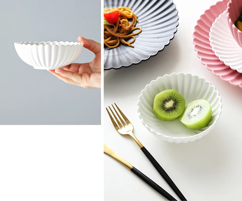 Название: керамическая тарелка в форме цветка, фарфоровая Салатница Размер: 8-дюймовая пластина: диаметр: 20,5 см/высота: 1,5 см 10,5 дюйма пластина: 26,5 см/высота: 2,2 см 5,5 дюйма чаша: Диаметр: 13,5 см/высота: 4,5 см Салатница 6,5 дюйма: диаметр: 16,5 см, высота: 7,5 см Материал: фарфор Упаковка: пенопласт с коробкой Посылка включает в себя: только 1 шт.