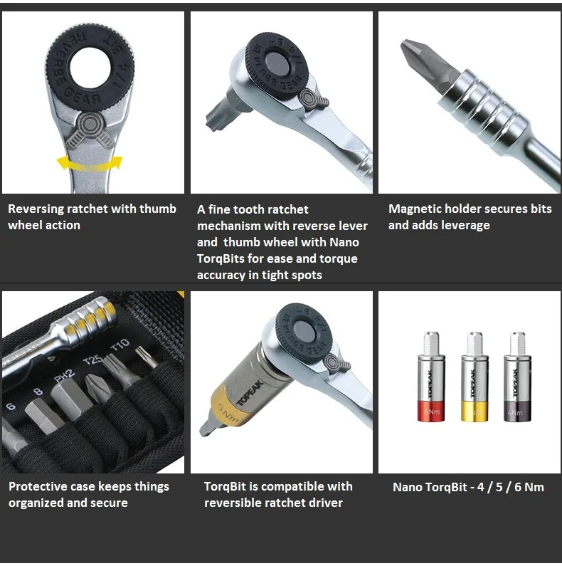 Храповая ракета™LITE NTXАрт №: TT2525Описание:Не хватает только кухонной раковины! Topeak Ratchet Rocket Lite NTX имеет все, что вам нужно, чтобы исправить и сделать точную регулировку вашего велосипеда во время езды. Благодаря хорошему зубному храповому механизму с обратным рычагом и большим колесом с нано-наконечниками для удобства и точности крутящего момента в плотных местах. Включает в себя отвертка с магнитными держателями, закаленная сталь инструменты в 2, 2,5, 3, 4, 5, 6 и 8 мм с шестигранной головкой, T10, T15, T25 Torx®, #2 Phillips биты и два инженерных класса полимерных шин рычаги. Защитный чехол обеспечивает безопасность и организованность вещей и даже имеет карман для переноски клеевых пластырей. * Функции: 19• Инструменты: Nano TorqBit - 4 / 5 / 6 нмAllen биты-2/2,5/3 / 4 / 5 / 6 / 8 ммТоркс®Биты-T10 / T15 / T25#2 Phillips отвертка, 2 пластиковые рычаги шин, трещотка инструмент* Трещотка материал инструмента: хром-ванадиевая сталь* Сумка: нейлон* Дополнительные функции: добавлен рычагМагнитный держатель для битНакладной карман* Размеры: 12,8x7,2x3 см/5 "x2.8" x1.2»* Вес: 233 г/8,22 унций ** Защитный чехол обеспечивает безопасность вещей** Трещотка заднего хода с большим пальцем** Магнитный держатель фиксирует биты и добавляет рычага** TorqBit совместим с реверсивным храповым Драйвером** Добавлен T15 Torx®Бит для установки аксессуаров ниндзя на серии Tri-Cage с легкостьюВитрина