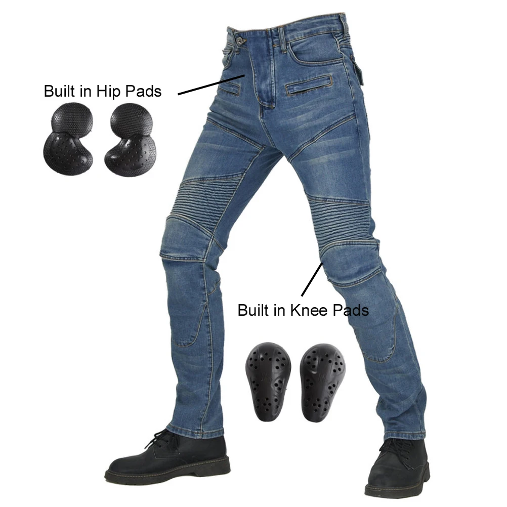 -Материал: 12 унций растягивающаяся джинсовая ткань, 97% хлопок + 3% спандекс -Износостойкая, ветрозащитная, дышащая, противоразрывная -Броня: свободный съемный протектор бедра и колена для повышенной защиты -Наколенник и задняя талия складывающиеся дизайн: может дать рыцару больше гибкости, очень эргономичная высокотехнологичная ткань телескопической функции -Когда не используется, можно быстро разгрузить, в отличие от рынка, как правило, необходимо приобрести дополнительные защитные накладки для защиты от столкновений-Цвет: черный, синий -S = 28: талия: 76 см/29,9 дюйма, длина 104 см/40,9 дюйма, бедра 54 см/21,2 дюйма -M = 30: талия: 80 см/31,5 ", длина 105 см/41,3", бедра 56 см/22" -L = 32: Талия: 82 см/32,2 дюйма, длина 107 см/42,1 дюйма, бедра 58 см/22,8 дюйма -XL = 34: талия: 86 см/33,8 дюйма, длина 108 см/42,5 дюйма, бедра 60 см/23,6 дюйма -XXL = 36: обхват талии: 92 см/36,2 дюйма, длина 109 см/42,9 дюйма, обхват бедер 62 см/24,4 дюйма -XXXL = 38: талия: 104 см/41 дюйма, длина 110 см/43,3 дюйма, бедра 64 см/25,2 дюйма -В том числе: 1 мотоциклетные штаны + 2 наколенники + 2 набедренные накладки -Повседневный стиль подходит для повседневной жизни -С коленей -Эластичная рубашка выше колена и талии-сзади для лучшего движения -Легкий съемный протектор колена -Различные процесс стирки -Подготовьтесь к размерам узора для эксклюзивного использования женщины мужчины, направляющего красивый силуэт Съемные Поддерживаемые CE Наколенники: когда они не используются, их можно быстро разгрузить, прикрепляемые наколенники позволяют гонщикам носить джинсы как повседневные джинсы в повседневной жизни CE сертифицированный наколенник также полностью съемный и может быть вертикально отрегулирован, чтобы соответствовать коленной чашечке для максимальной защиты Складывающийся дизайн для колена и спины: может придать рыцару большую гибкость, очень эргономичная высокотехнологичная ткань телескопической функции
