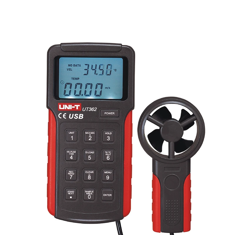 UNI-T устройство UT361/UT362 Анемометр цифровой измеритель скорости ветра Тахометр анемоскоп 2-30 м/с Сплит-Тип анемометр с хранения данных