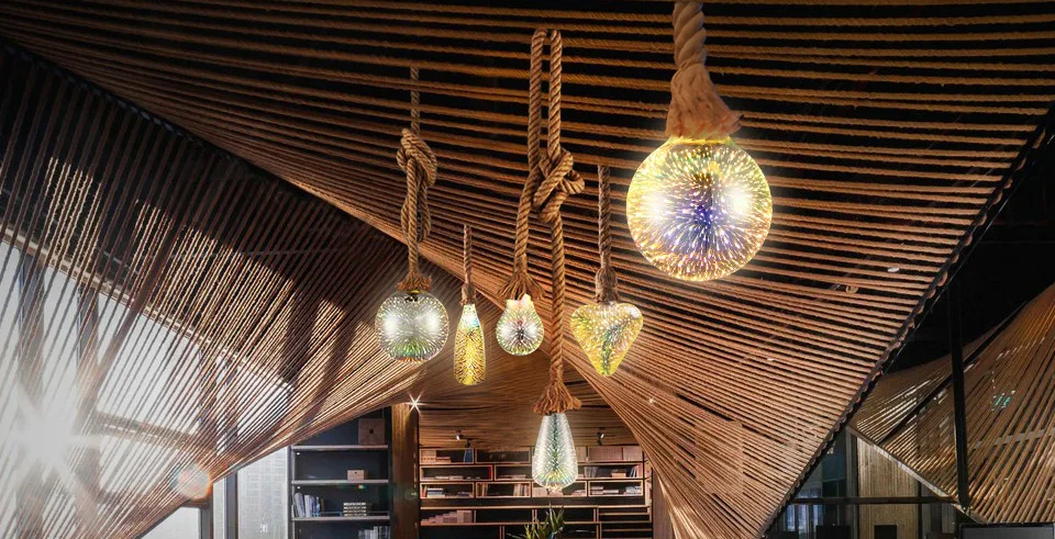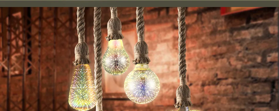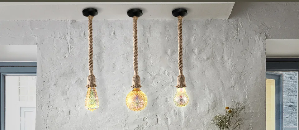Современный подвесной светильник, веревка, подвесной светильник, s держатель, 3D лампы для фейерверков, AC85-265, подвесные лампы для кухни, гостиной, ресторана