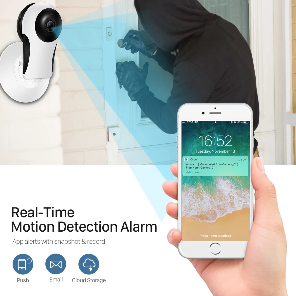 Любое подозрительное движение, брошенное в глаза камеры, будет обнаружено и записано, в результате чего воров и грабителей будет негде спрятать. В то же время, вы получите мгновенный будильник приложения нажимает на ваши умные устройства, где бы вы ни находились.