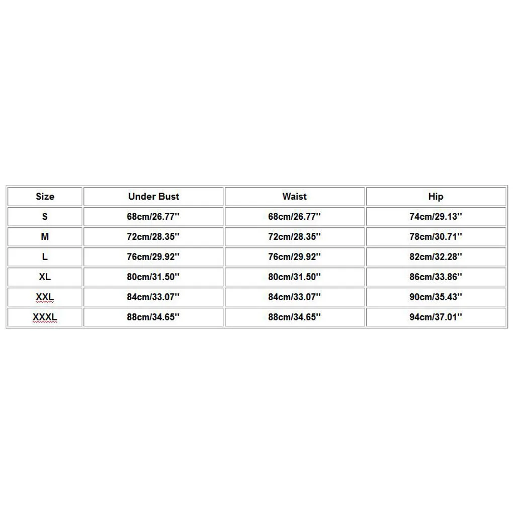 Размер Под грудью Талия Бедра S 68 см/26,77'' 68 см/26,77'' 74 см/29,13'' М 72 см/28,35'' 72 см/28,35'' 78 см/30,71'' L 76 см/29,92'' 76 см/29,92'' 82 см/32,28'' XL 80 см/31,50'' 80 см/31,50'' 86 см/33,86'' XXL 84 см/33,07'' 84 см/33,07'' 90 см/35,43'' XXXL 88 см/34,65'' 88 см/34,65'' 94 см/37,01''Особенности товара