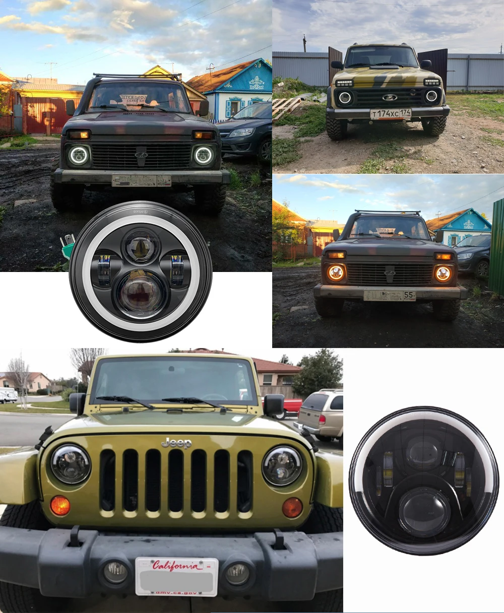Ходовые огни 40 Вт 80 Вт 75 Вт Автомобильные светодиодные H4 7 дюймов автомобильные аксессуары ангельские глазки H4 светодиодные фары для Lada Niva 4X4 Uaz Hunter JK TJ