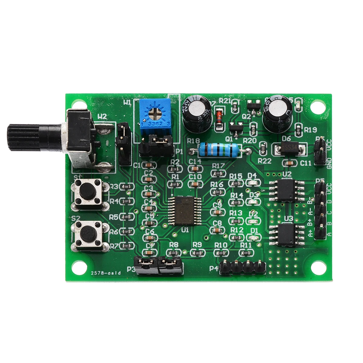 4. Автоматический режим круглого хода: запуск и остановка S1, переключение S2, скорость потенциометра W2 и потенциометр W1 настраивают автоматические шаги круглого хода. После запуска двигатель автоматически бежит назад и вперед в пределах количества шагов, отрегулированных W1.