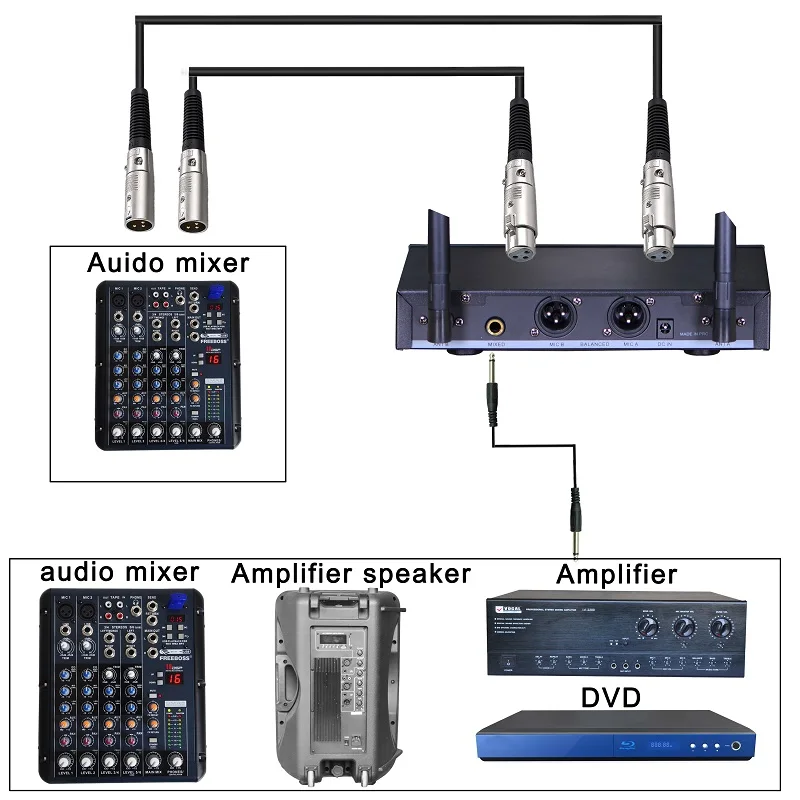 Если вам нужна другая частота, пожалуйста, сообщите нам перед заказом.Как использовать беспроводной микрофон:1) 6,35 Штекер кабель для аудио смеситель (есть один кусок кабеля в посылка)
