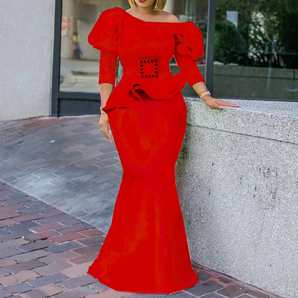 Женское вечернее платье в африканском стиле с винтажным принтом, сексуальное платье макси с открытыми плечами, Осеннее облегающее платье с длинным рукавом размера плюс, вечернее длинное платье русалки