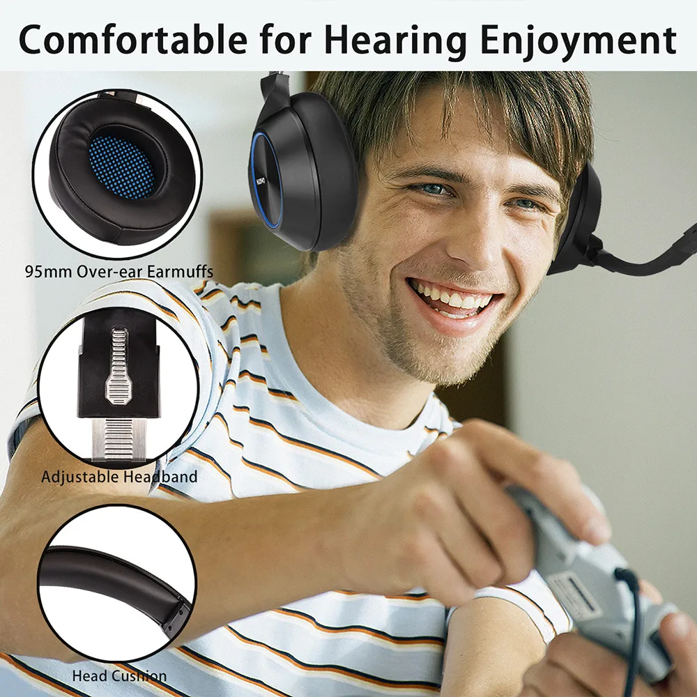 USB разъем, шумоизоляция микрофон, над ухом мягкий наушник, светодиодный свет, громкость/микрофон Управление для ПК, PS4, Skype.