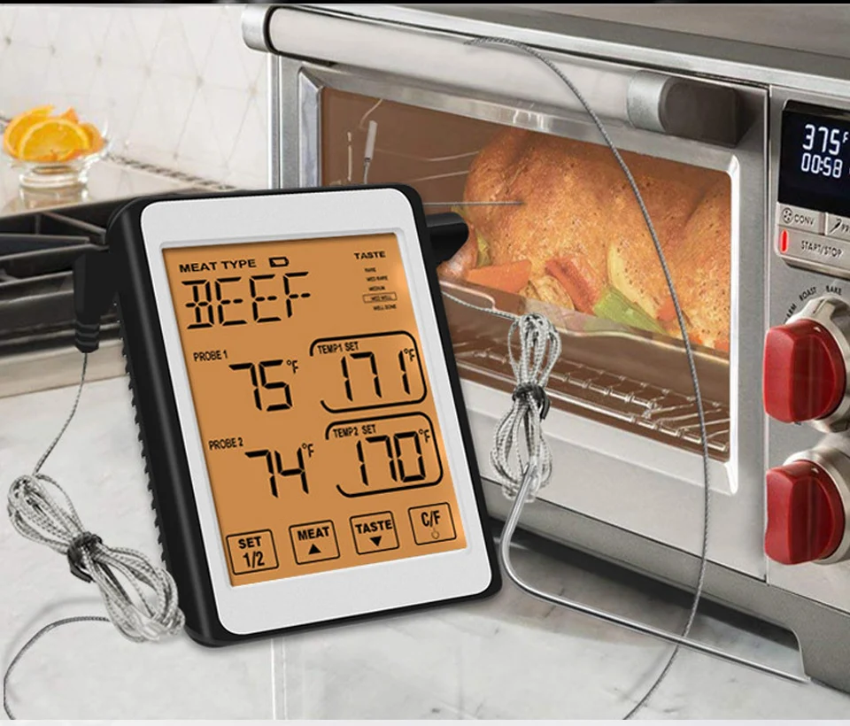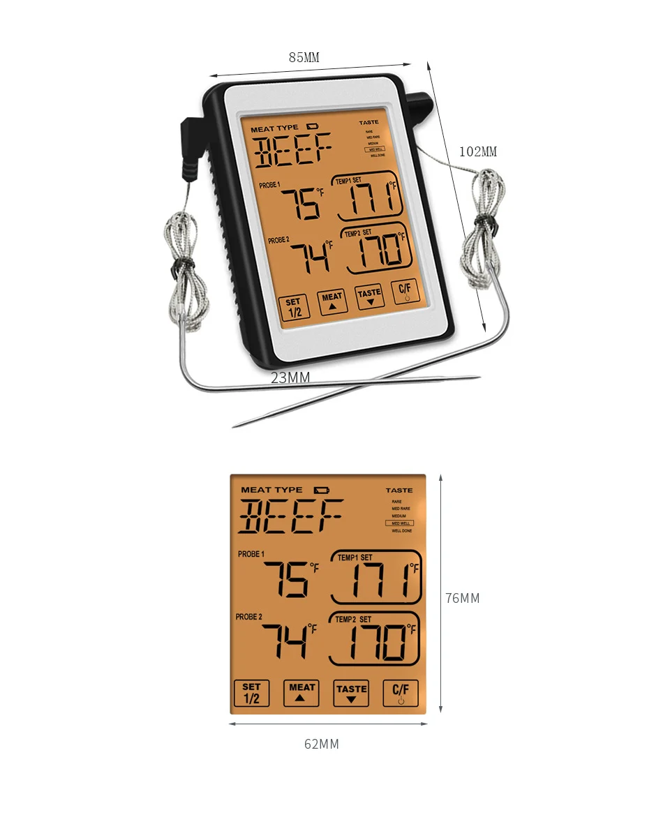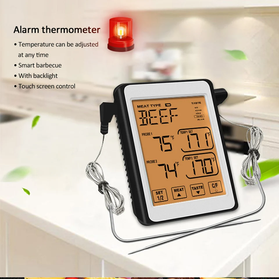 Цифровой термометр для барбекю, Кухонный Термометр для духовки, приготовления пищи на гриле, коптильни, термометр для мяса с двойным зондом и сигналом о температуре