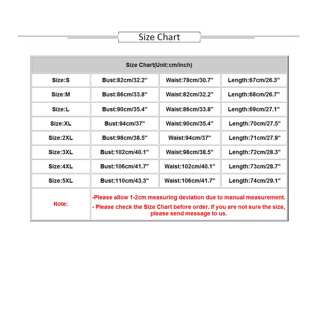 Таблица размеров (единица измерения: см/дюйм) Размеры: S Бюст: 82 см/32,2" Обхват талии: 78 см/30,7" Длина: 67 см/26,3" Размеры: М Бюст: 86 см/33,8" Обхват талии: 82 см/32,2" Длина: 68 см/26,7" Размеры: L Бюст: 90 см/35,4" Обхват талииТел.: 86 см/33,8" Длина: 69 см/28,1" Размеры: XL Бюст: 94 см/37" Обхват талии: 90 см/35,4" Длина: 70 см/28,5" Размеры: 2XL Бюст: 98 см/38,5" Обхват талии: 94 см/37" Длина: 71 см/28,9" Размеры: 3XL Бюст: 102 см/40,1" Обхват талии: 98 см/38,5" Длина: 72 см/29,3" Размеры: 4XL Бюст: 106 см/41,7" Обхват талии: 102 см/40,1" Длина: 73 см/29,7" Размеры: 5XL Бюст: 110 см/43,3" Обхват талии: 106 см/41,7" Длина: 74 см/29,1" Примечание: