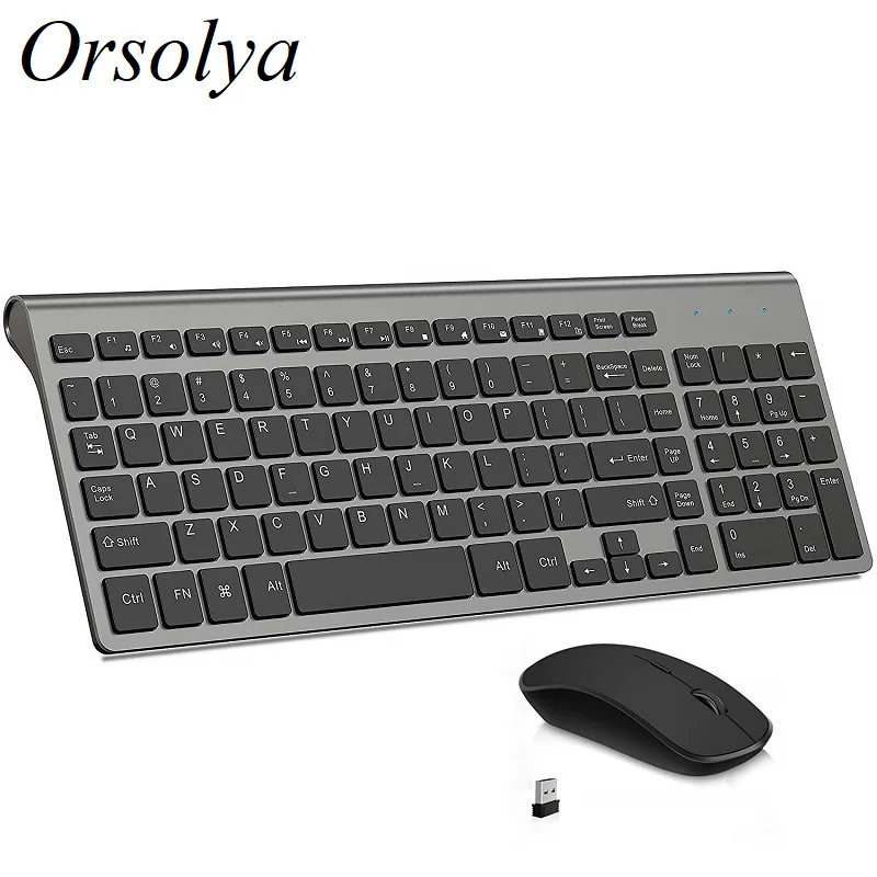 ●Quiet and Stream line Design- wireless desktop keyboard has all keys in scissor-cross low profile structure;which maks it ulra-slim(keystroke travel 2mm),resposive and less noise.The portable mouse is also built-in in newest noise-free switches for quiet click.Both keyboard and mouse give a world of silence and a morden desktop; great for conference, board presentation, library, coffee shop, night work, travel, etc. ●High precition DPI 2400 in 5 levels- You can easily change the cursor sensitivity of this cordless mouse depending on your activities;usually 1600 DPI for office, DPI 2000-2400 for 4K resolution monitor or entertainment like gaming at home. ●Convenient and Fast operation-Type fast with numeric keypad and instant access your music,internet,e-mail,volume,etc by multi-media hot keys.(The hot-keys not fully compatible with Mac System )The keyboard and mouse combo commonly use one nano receiver only for saving USB port of your computer or laptop.The nano receiver just snap in the storage of mouse near battery compartment. ●Ergonomic Desicn-The keyboard has a tilt angle for the great typing position. The wireless mouse in contoured shape would provide hours of work comfortably. ●Long Battery Life- The optical mouse working currency is only 0.11mA and will automatically enter power saving mode if inactivity in 20s; easily wake it up by moving.The compact keyboard also come into sleep in 8 minutes if no typing.