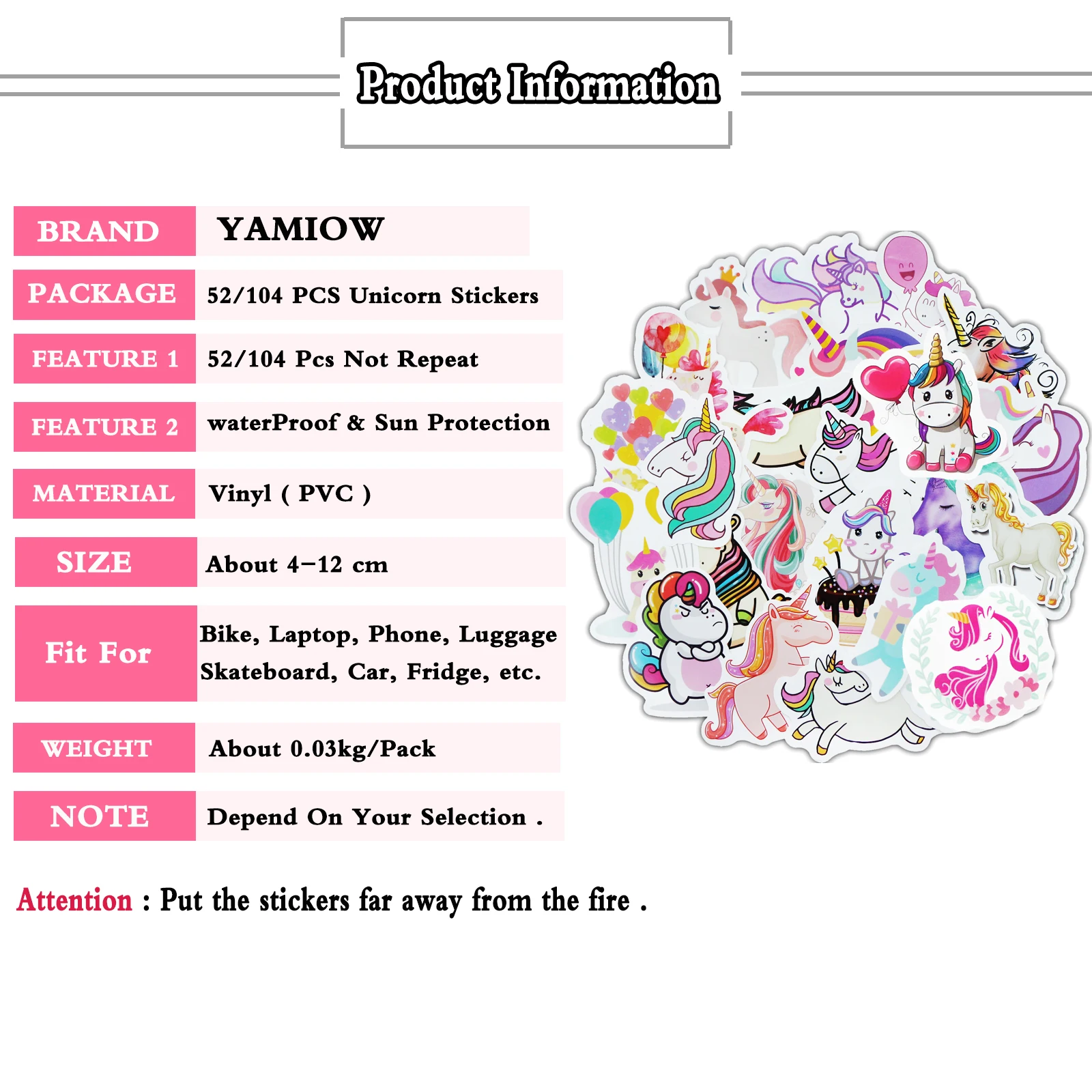 52 / 104 шт мультфильм Единорог наклейки не повторяет ~