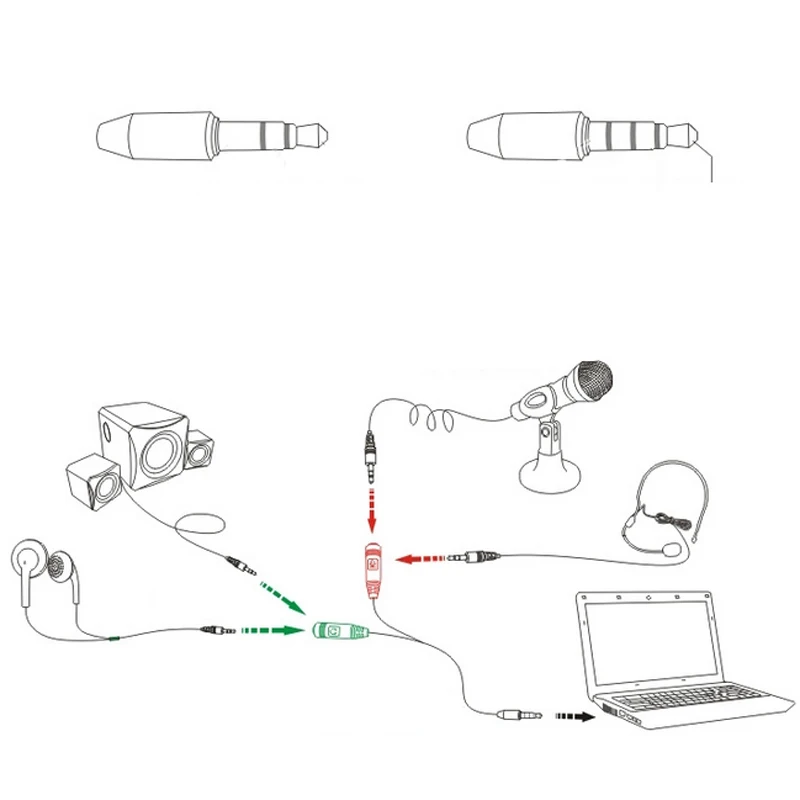 * Превращает 3,5 мм комбинированный наушники/микрофон порт на две отдельные гнезда-один 3,5 мм для наушников и один 3,5 мм разъем для подключения микрофона.