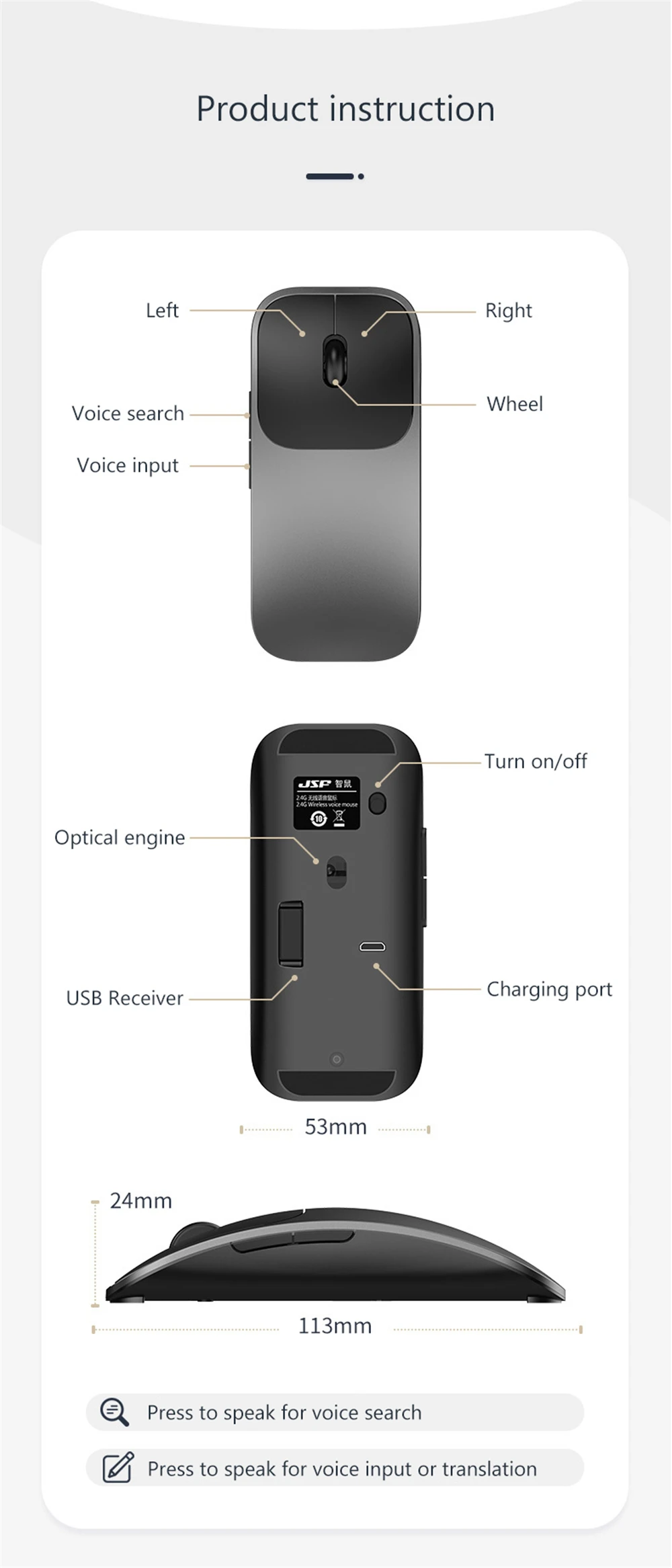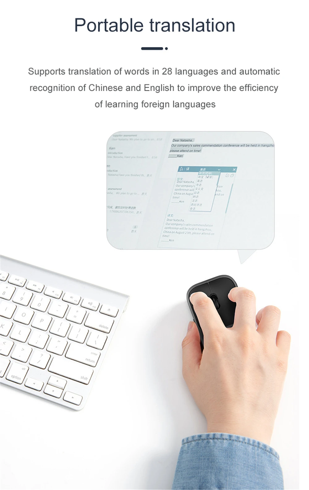 Беспроводная умная мышь для ввода голоса 1600 точек/дюйм 28 языковая переводная мышь для Macbook Lenovo HP Dell Asus ноутбук ПК игровая мышь