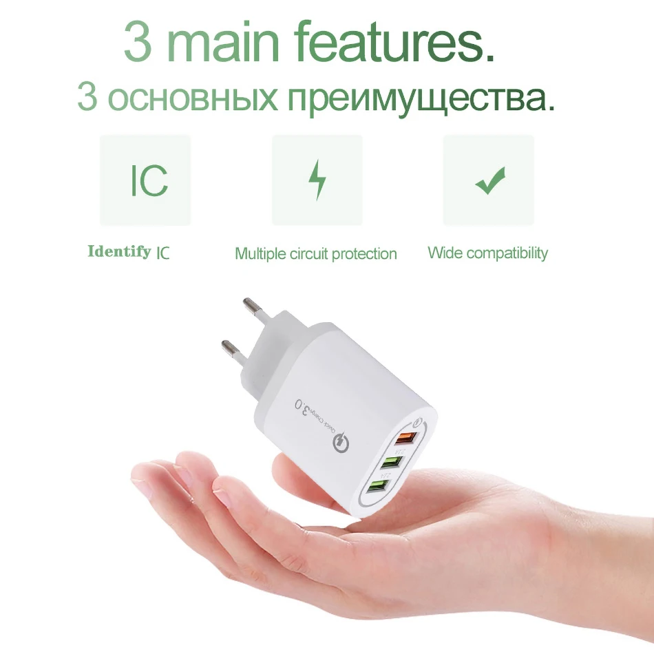2.4AQC3. 0 3USB Европейский стандарт США быстрое зарядное устройство для мобильного телефона