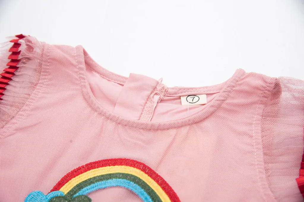 Радужные платья принцессы из тюля с рюшами и рюшами для маленьких девочек