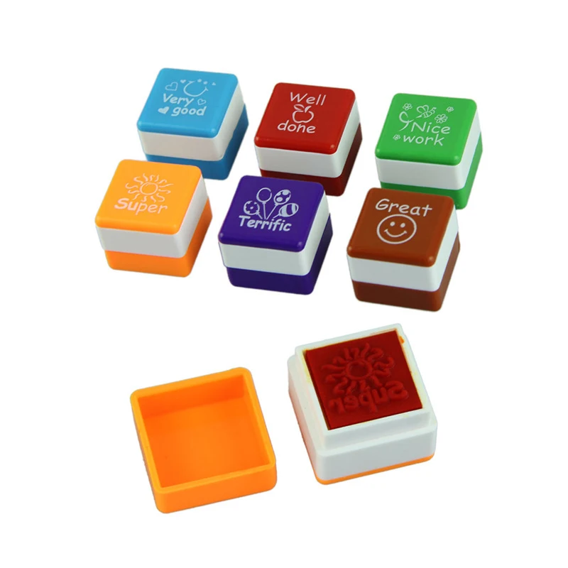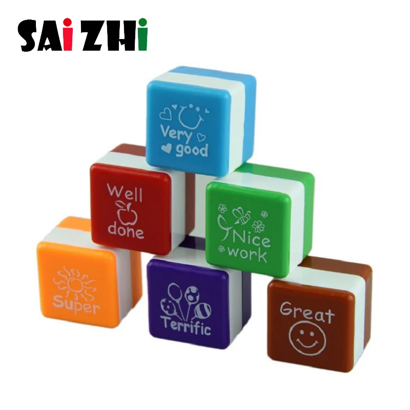Saizhi 6pcs Kindergarten Teachers Praise Phrase reward Stamper Children School Reward Stamps Sticker DIY English Words kids Toys
