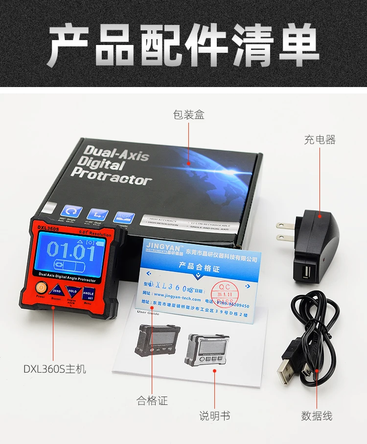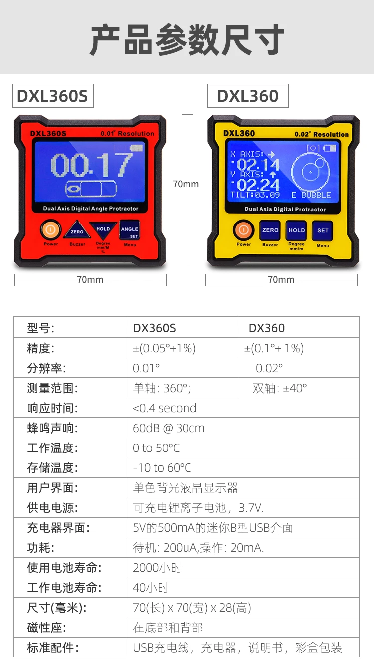 Высокая точность двухосный цифровой дисплей уровень meterDXL360/S, нейтральная упаковка, вес с цветом box256g, цветная коробка Размер 171x132x45мм, матч, руководство на английском языке, зарядка с литиевой батареей, стандарт с магнитом (также может быть изготовлен без магнита)