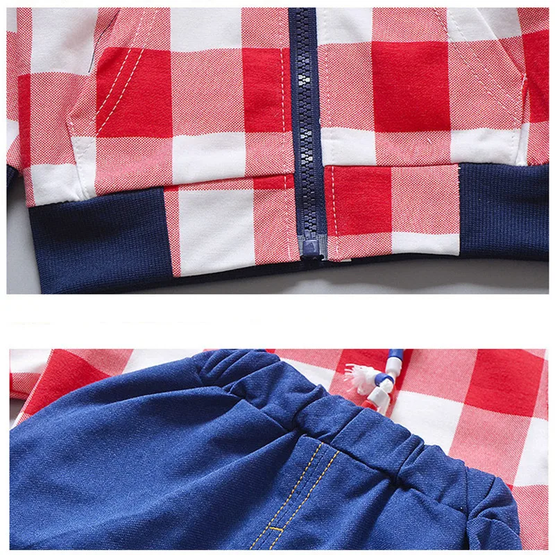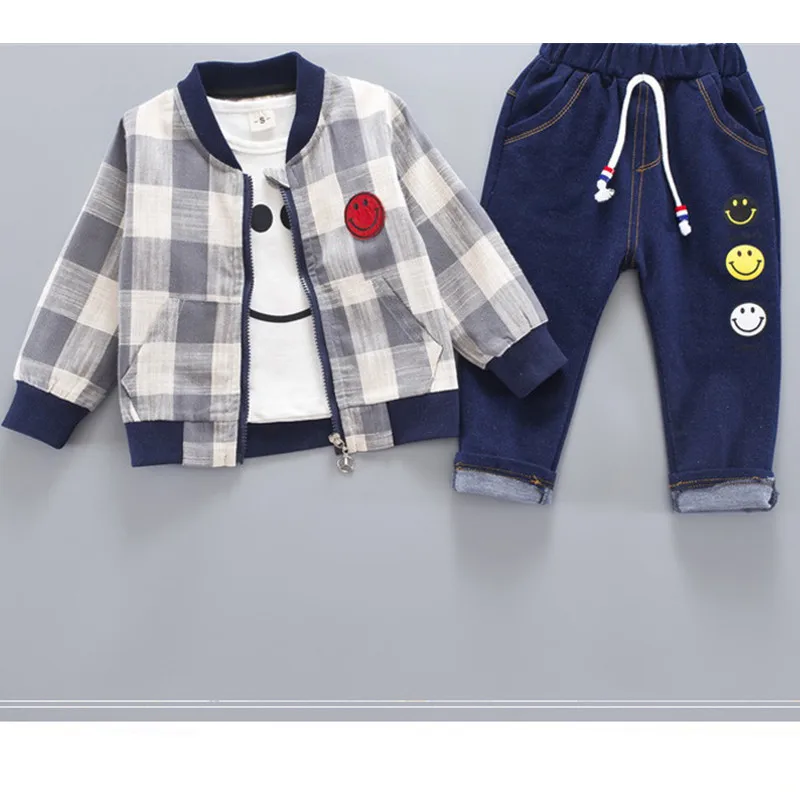 Baby Clothing Sets 2020 Spring Fall Toddler Infant Clothes Plaid Coat Long Sleeve T Shirt Jeans 3PCS Kids Suits Clothing A0077