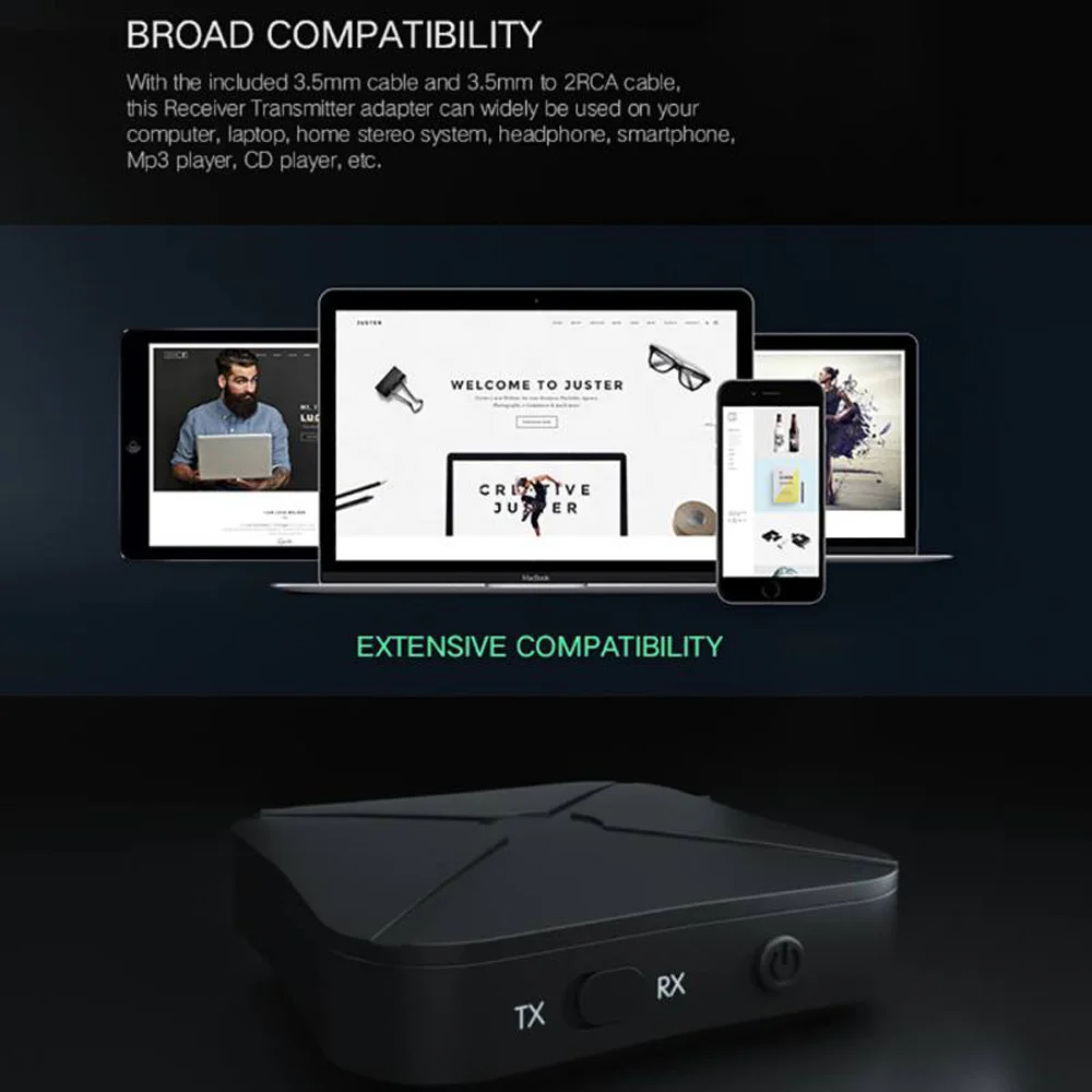 * Широкая совместимость: с прилагаемым кабелем 3,5 мм и кабелем 3,5 мм-2 RCA, этот адаптер передатчика приемника может широко использоваться на вашем компьютере, ноутбуке, домашней стереосистеме, наушниках, смартфонах, mp3-плеер, CD-плеер и т. Д.