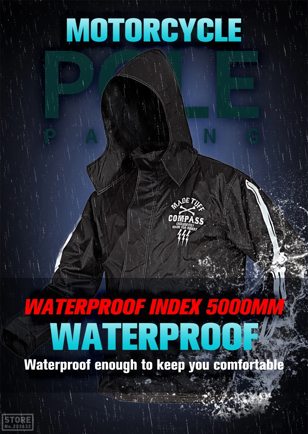 Характеристика: Более удобно ездить на ноге с достаточно гидроизоляцией в условиях сильного дождя Водонепроницаемая Технология анализа, профессиональное водонепроницаемое покрытие (PU): после профессиональной водонепроницаемой обработки покрытия, может эффективно блокировать дождевую воду. Характеристики: Ткань: 210 T + PU + сетка + PU клей Вес: 1,0 кг Легкий и тонкий: легкий, не знойный, без веса, водонепроницаемый Рекомендуемый размер: Упаковка включает: Плащ-1 шт. 1 х дождевые штаны Флуоресцентный
