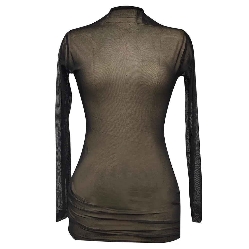 Женские прозрачные сетчатые Топы с длинным рукавом, повседневные Клубные мини-платья