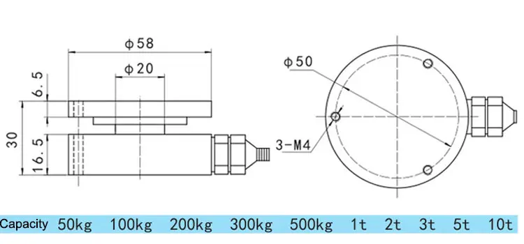 Small Size Φ58 Flat Force Load Cell 20 30 50 100 200 300 500 1000 2000 KG 1 2 Ton Tension Pressure Sensor