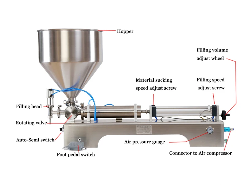 Конструкция машины для наполнения серии является разумной, модель компактная, надежная, точная, простая в эксплуатации, материал контактных частей изготовлены из 304 материала из нержавеющей стали, отвечают требованиям сертификации GMP. В соответствии с потребностями пользователя в рамках любых моделей регулирования заполнения объема и скорости заполнения, высокая точность заполнения. Наполнение головки принимает анти-утечки и подъема наполнения устройства.