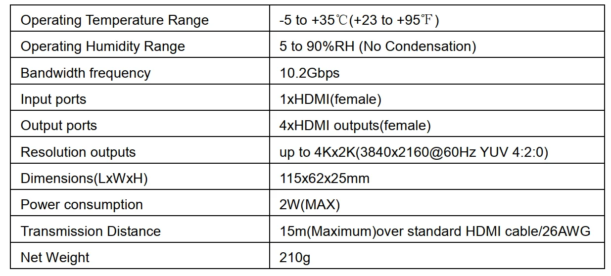 3) поддерживает четыре вида возможностей обработки EDID: смешанный EDID, копия EDID, выход по умолчанию 1080p, выход по умолчанию 4K x 2K.