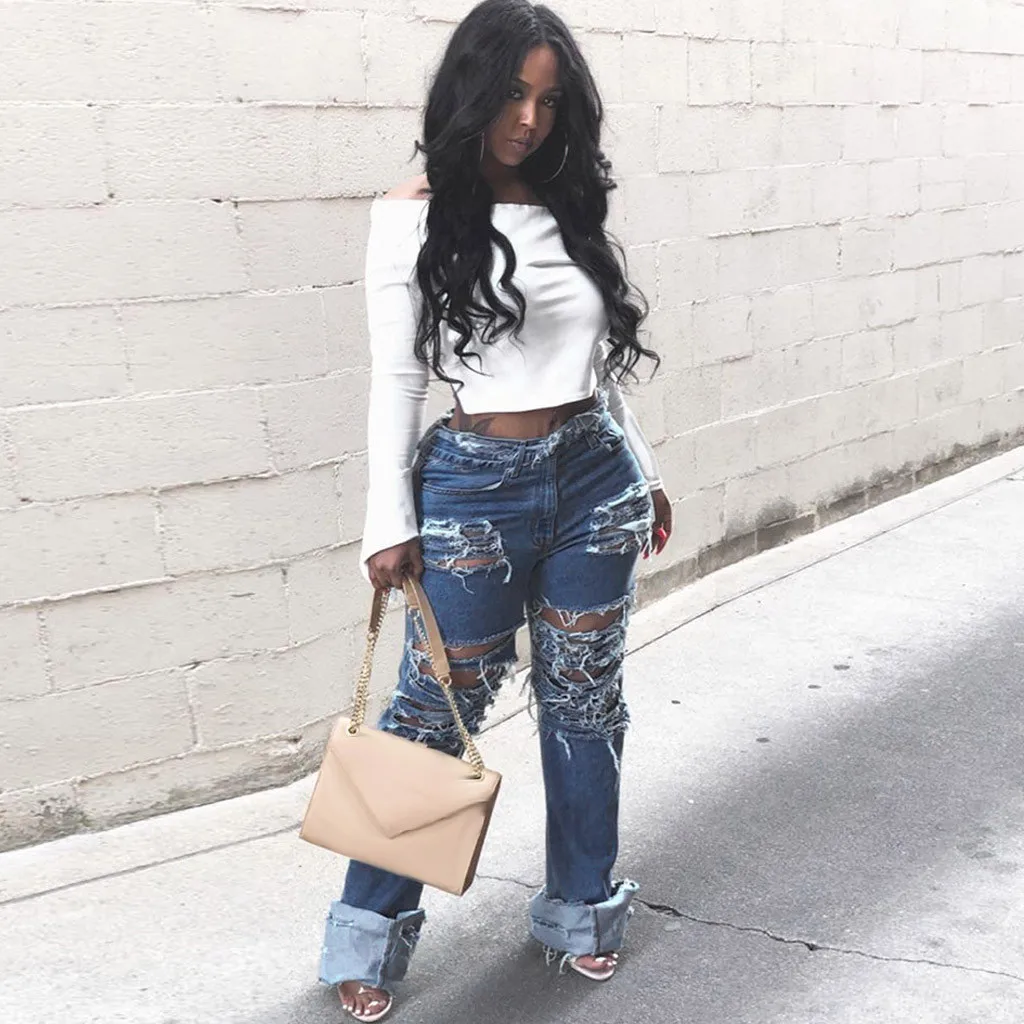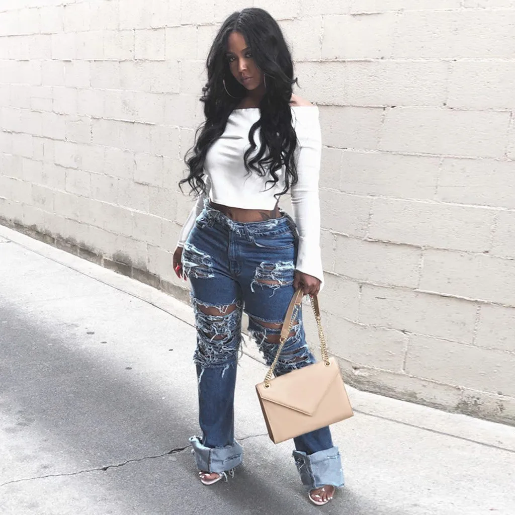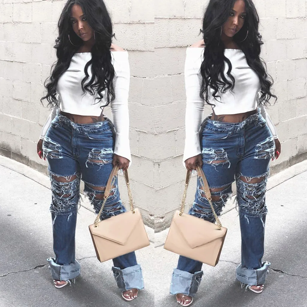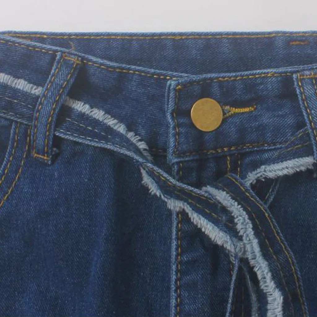 Женские рваные джинсы с карманами и кисточками, повседневные джинсы с высокой талией, прямые брюки из денима