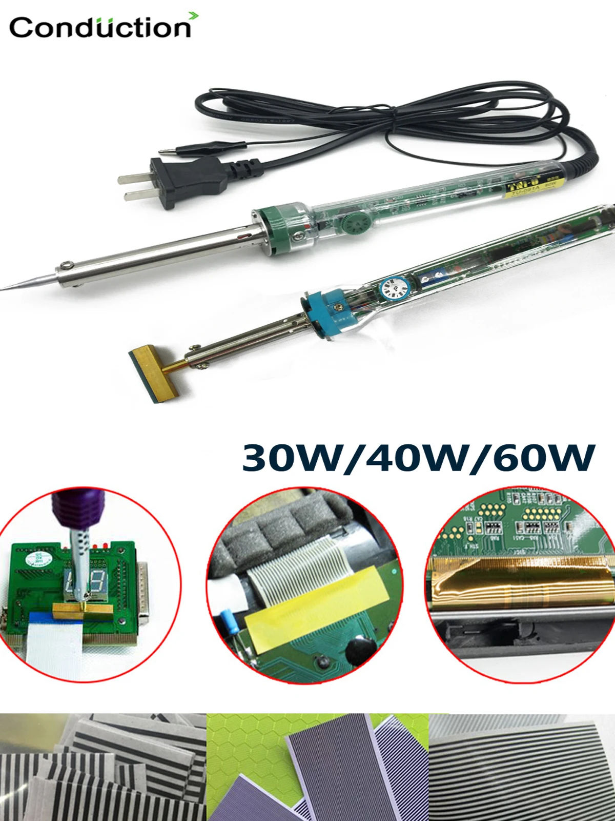Электрический паяльник с регулируемой температурой 30 Вт/40 Вт/60 Вт, паяльный наконечник с бесплатным горячим прессом для ремонта гибкого кабеля с ЖК-экраном Рабочее напряжение: 220 В/110 В Температура регулируется от: 380 ℃/200 ℃-400 ℃/400 ℃ Применение: необходимый инструмент для ElecDIY или ремонта, легко регулировать и контролировать температуру. Поставляется как Вилка питания US/EU/UK/CN, также поставляется с мини-адаптером в соответствии с вашей страной. Если вы ищете штепсельную вилку европейского стандарта или другие инструменты для пайки/сварки, вы можете выбрать спецификацию на левой стороне нашей категории.