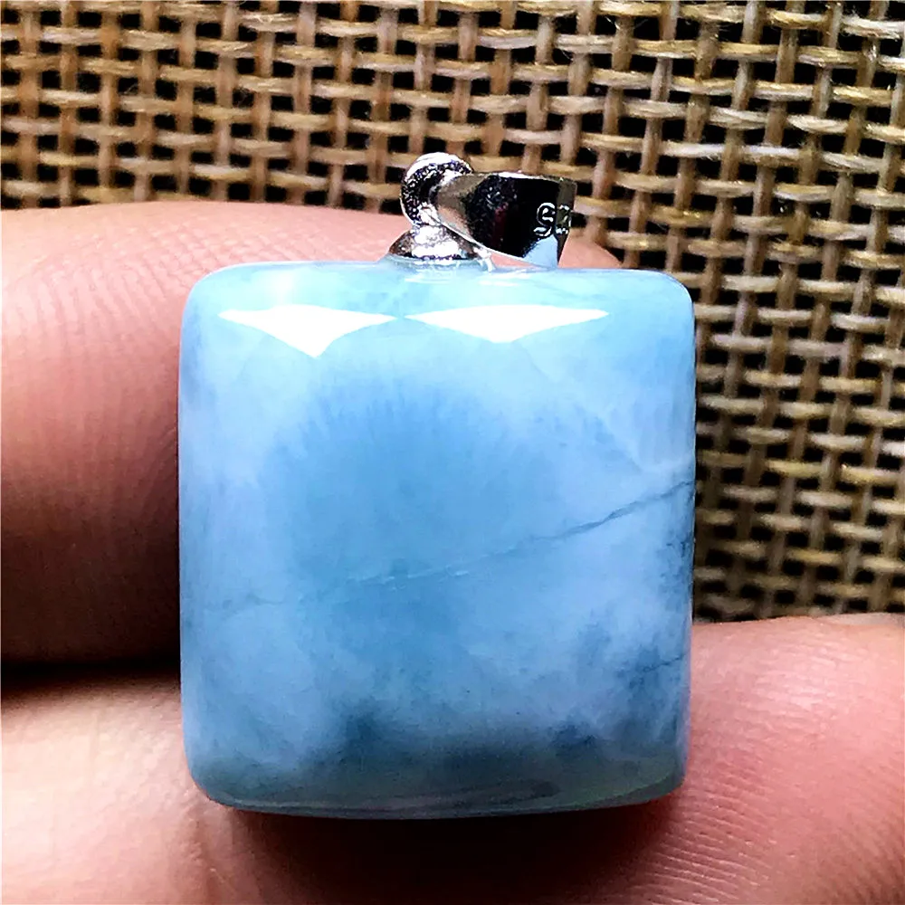 Топ натуральный синий подвеска Larimar ювелирные изделия для женщин леди мужчина кристалл 16x7 мм бусины водный узор Доминика прямоугольник камень AAAAA Прямая поставка