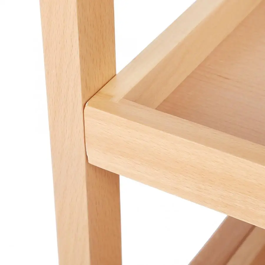 Household Kitchen 3-Tier Beech Cart Rolling Gadget Trolley Movable Storage Serving Trolley