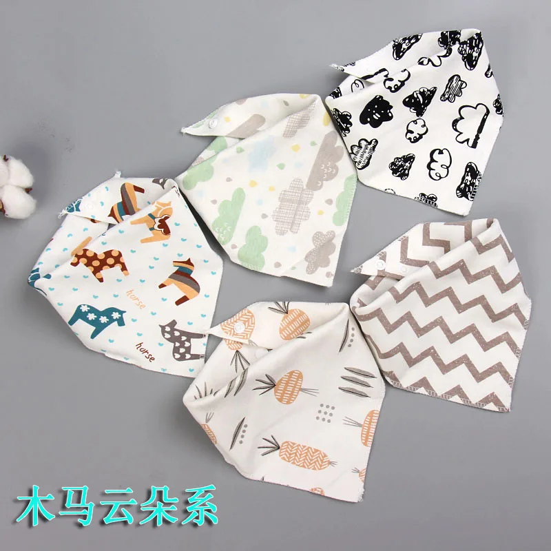 Детские нагрудники, треугольные двойные хлопковые нагрудники, 5 шт./лот, Слюнявчик с мультяшным принтом, полотенце для маленьких мальчиков и девочек, фартук для кормления, хлопковые нагрудники-бандана