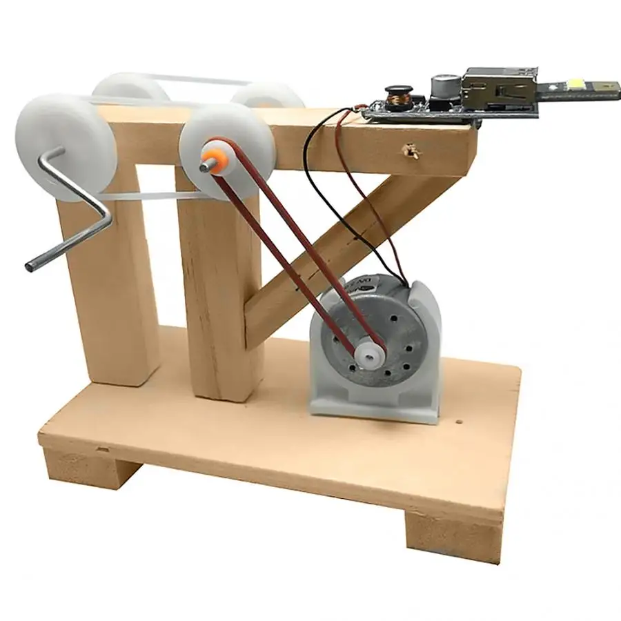 DIY ручной Электрогенератор материал набор, Веселитесь с вашими детьми. Детские развивающие игрушки. Изготовлен из нетоксичного материала, безопасный для детей, прочный. Может тренировать зрительные способности ребенка, тактильную способность, координацию, когнитивные способности, воображение, разрешение и пространственные способности. Хороший подарок для вашего ребенка, такой как день рождения, праздник и т. д. Дети узнают о принципе питания (электромагнитной индукции) путем создания генератора питания через себя. Поверните ручку и двигатель начинает вращать и светильник лампы. Следуйте инструкциям, легко собрать.