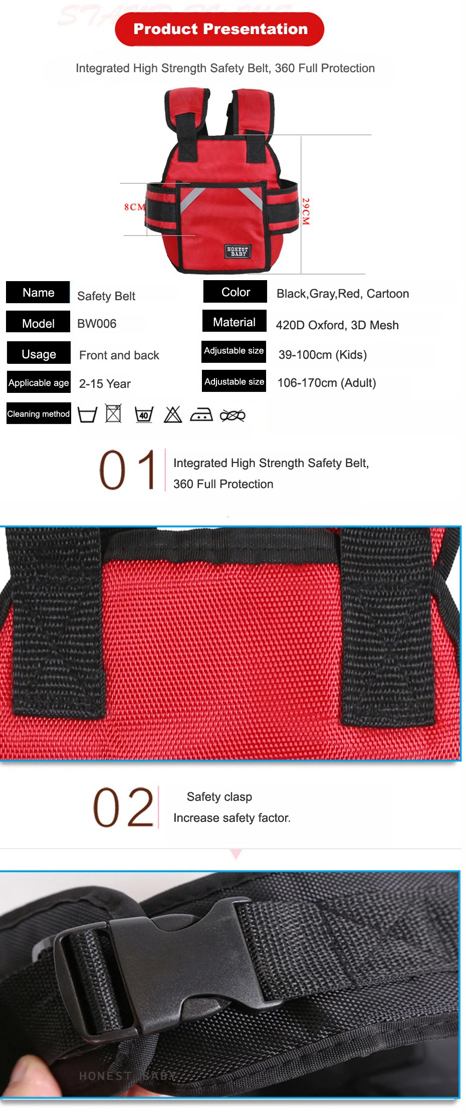 -Детский наплечный ремень, маленькая Пряжка (предотвращает падение плеч с внешней стороны), взрослый, который в полоску на грубой завязке на талии, еще одна большая пряжка. Дети могут быть спереди или сзади. Ремень может обеспечить безопасность детей в двигателе или электромобиле.
