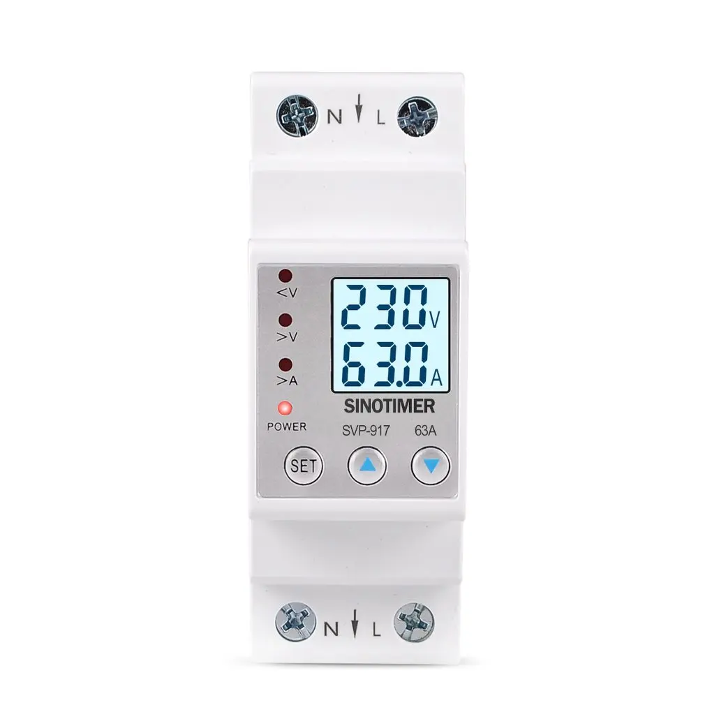 SINOTIMER 63A 80A Din-рейка, регулируемое защитное устройство от перенапряжения, защита от тока, вольтметр, амперметр, кВт/ч