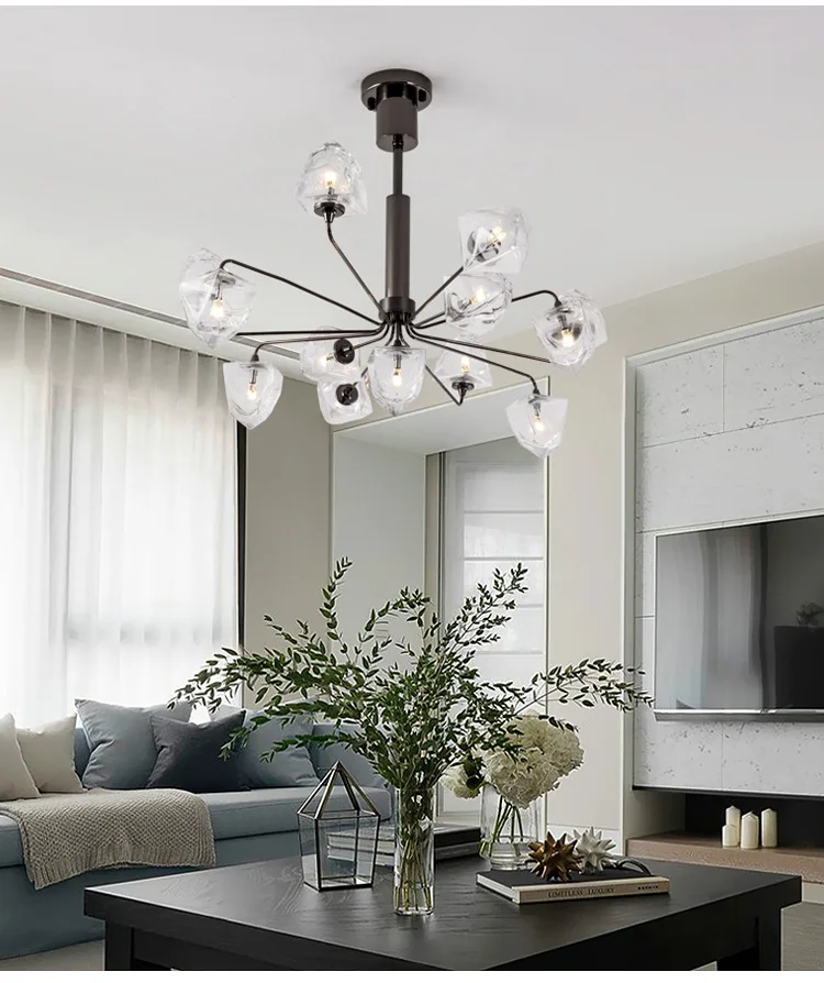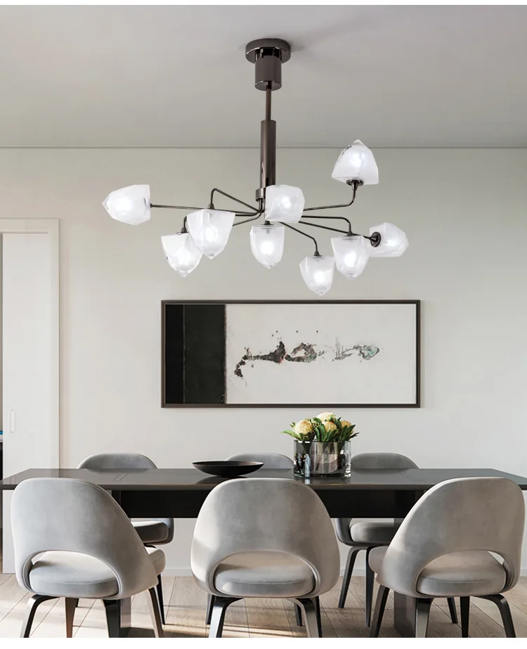 Скандинавская лампа, прозрачное стекло, внутреннее украшение, освещение, ледяная люстра, столовая, блеск, с помпонами, хрустальная люстра, освещение