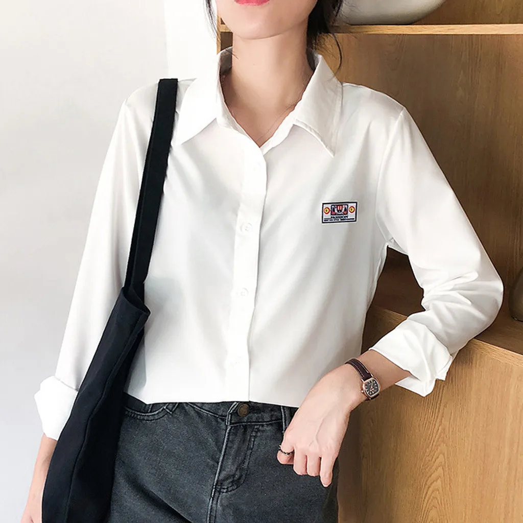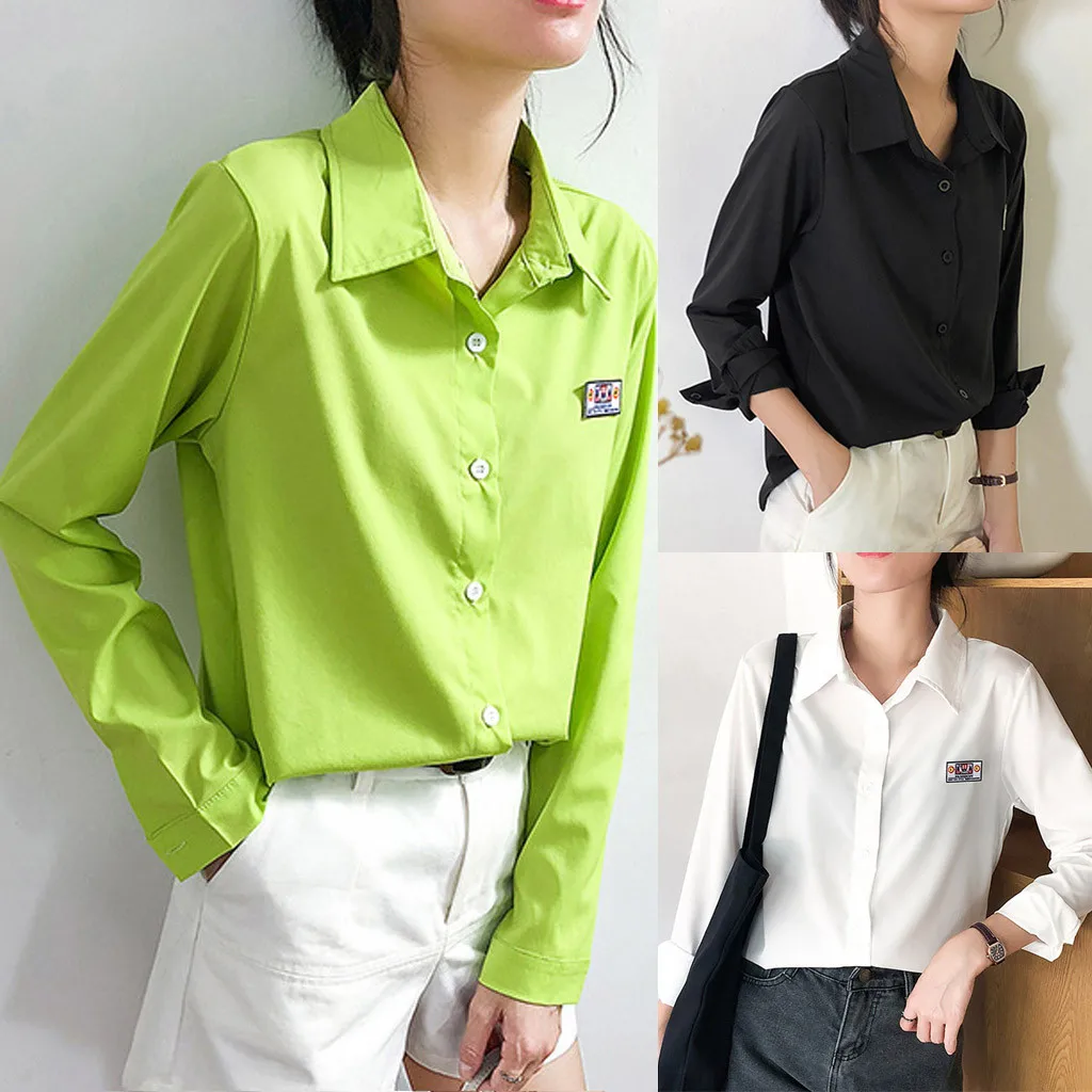 Особенности: модные однотонные топы с длинными рукавами, рубашки с буквенным принтом, топы на пуговицах,Повседневные рубашки,.