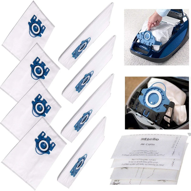 *8x3D Efficiency Vacuum Hoover Cleaner Dust Bags&4x Filters For Miele GN Hyclean