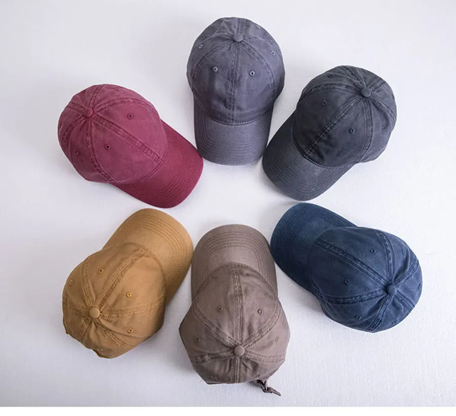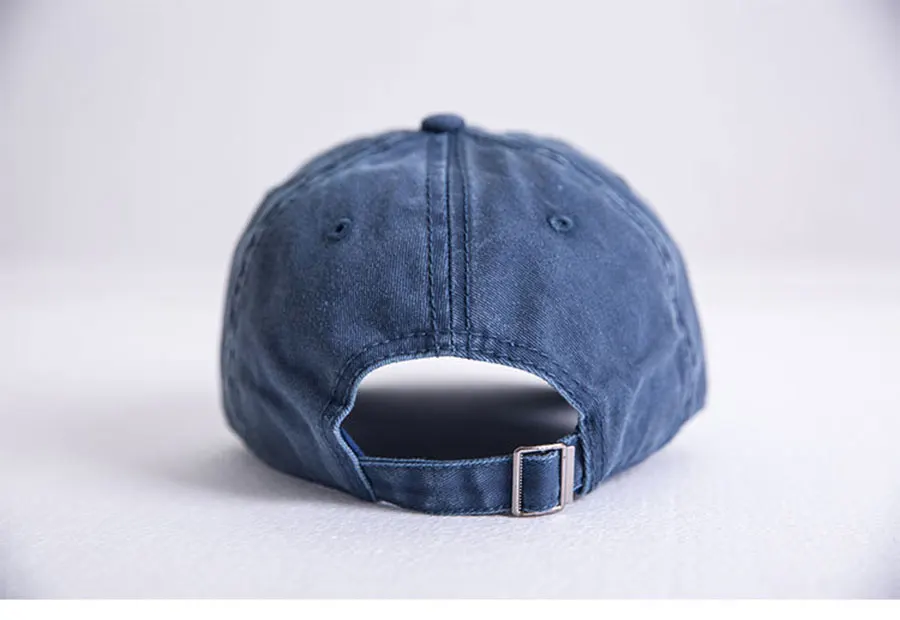 Cotton baseball cap for women/men 1. Materials: cotton. 2. Feature: a. Stiff brim. b. Soft unstructured top. c. Adjustable metal buckle, adjust size. d. Wash classic style. 3. Package: packed by Inflatable bag which can protect the hats during express.