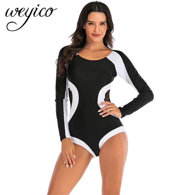 Однотонная открытая печать, молния сзади, Винтажный костюм для серфинга