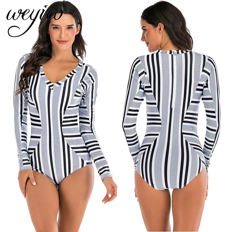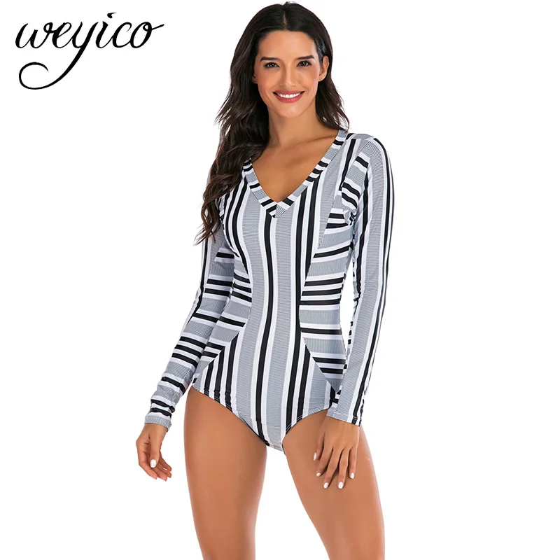 Серый полосатый костюм для серфинга, V-образный вырез Высокое качество