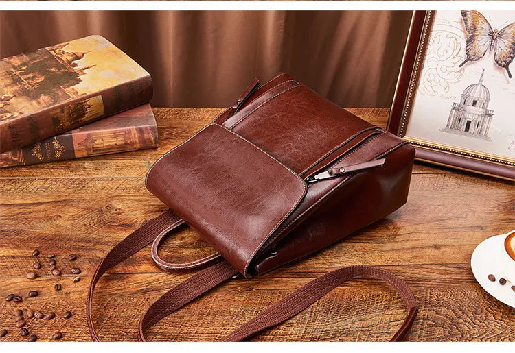 Размер: l28xh31xw10 см Материал: телячья кожа с масляным воском Тип: женский рюкзак; Сумка через плечо, сумка-мессенджер, дорожные сумки для девочек